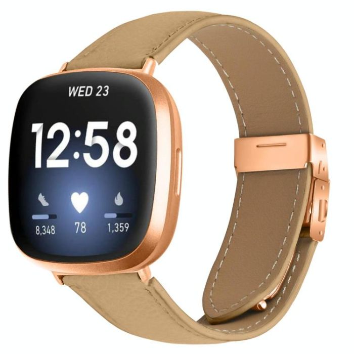 For Fitbit Versa 3 / 4 Lychee Texture Rose Gold Turtle Back Buckle Leather Watch Band(Camel)