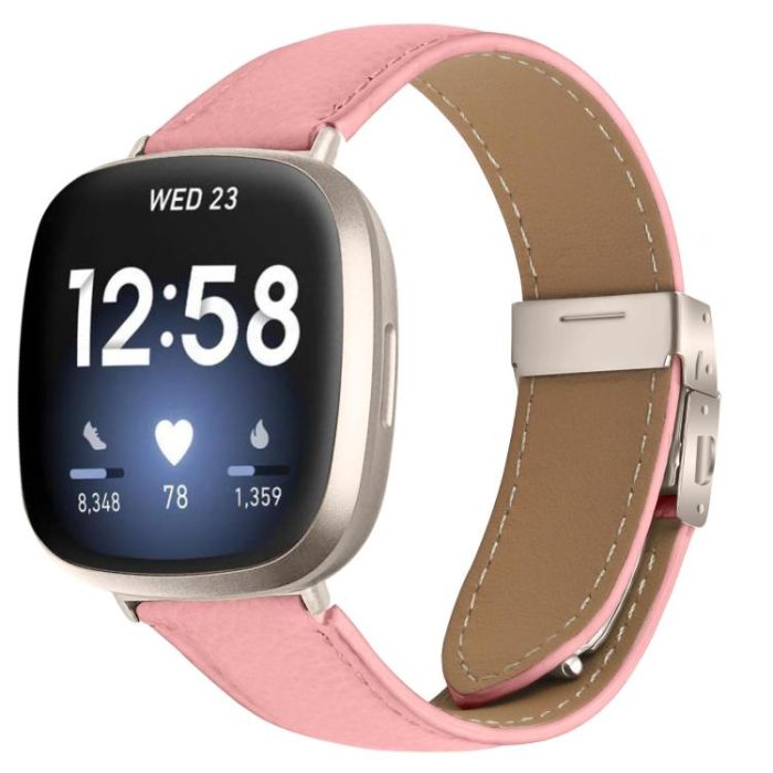 For Fitbit Versa 3 / 4 Lychee Texture Starlight Turtle Back Buckle Leather Watch Band(Pink)