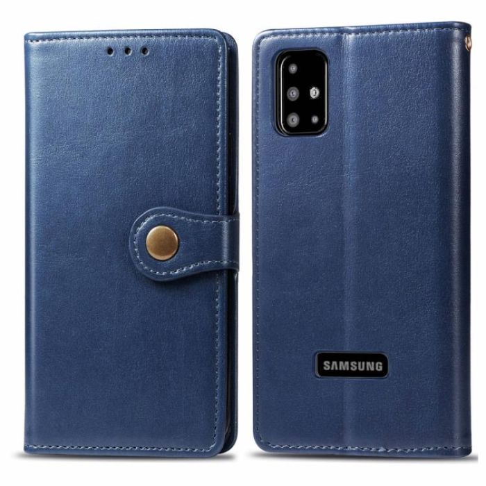For Galaxy A51 Retro Solid Color Leather Buckle Phone Case with Lanyard & Photo Frame & Card Slot & Wallet & Stand Function(Blue)