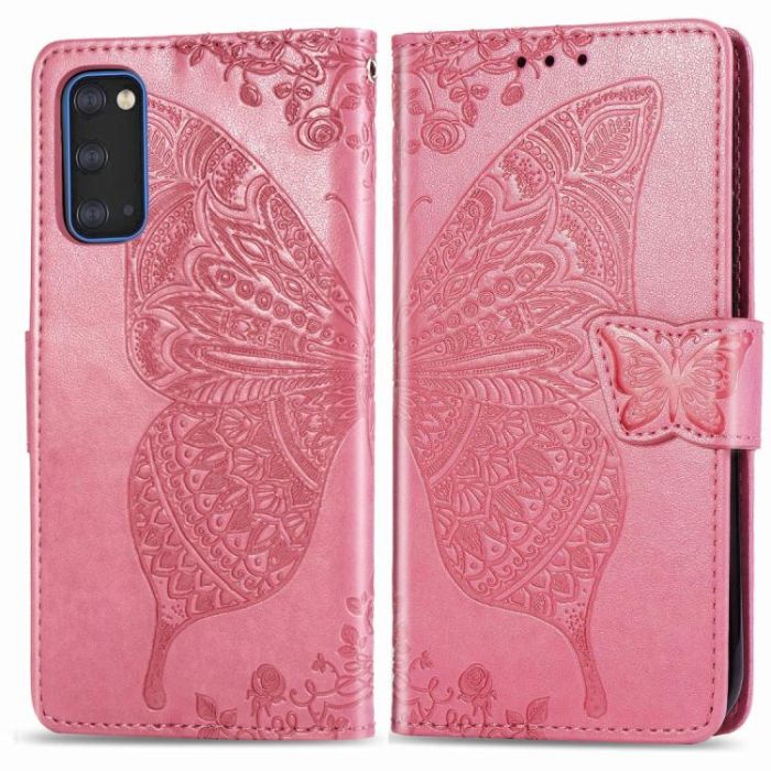 For Galaxy S20 Butterfly Love Flower Embossed Horizontal Flip Leather Case with Bracket / Card Slot / Wallet / Lanyard(Pink)
