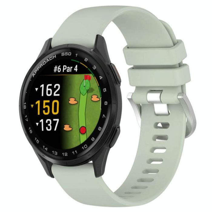 For Garmin Approach S50 20mm Liquid Glossy Silver Buckle Silicone Watch Band(Green)