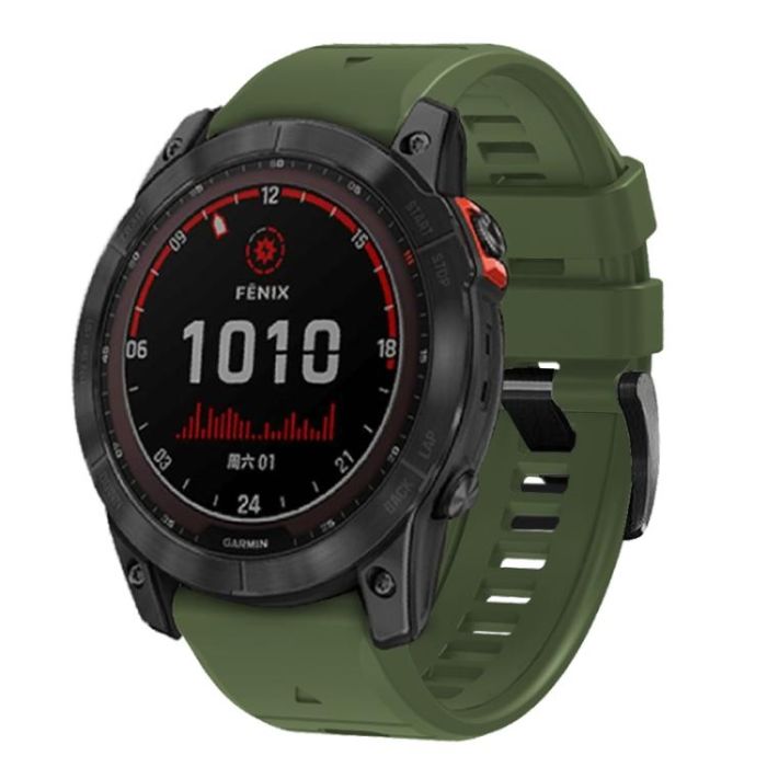 For Garmin Fenix 7X 26mm Solid Color Steel Buckle Silicone Quick Release Watch Band(Army Green)