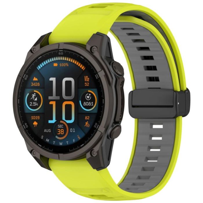 For Garmin Fenix 8 AMOLED 47mm Two Color Magnetic Silicone Watch Band(Lime+Gray)