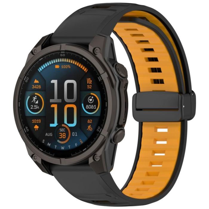 For Garmin Fenix 8 AMOLED 51mm Two Color Magnetic Silicone Watch Band(Black+Orange)