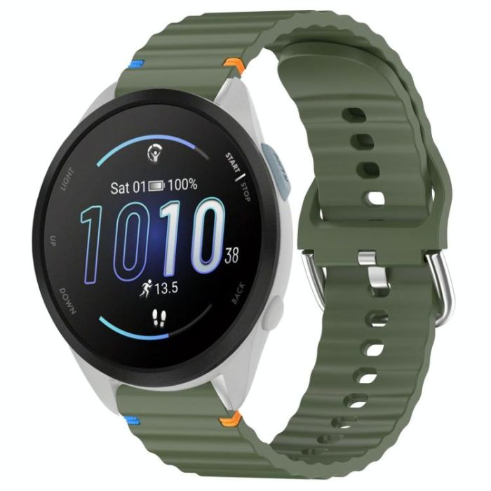 For Garmin Forerunner 165 Wavy Grain Stitched 20mm Silicone Watch Band(Army Green)