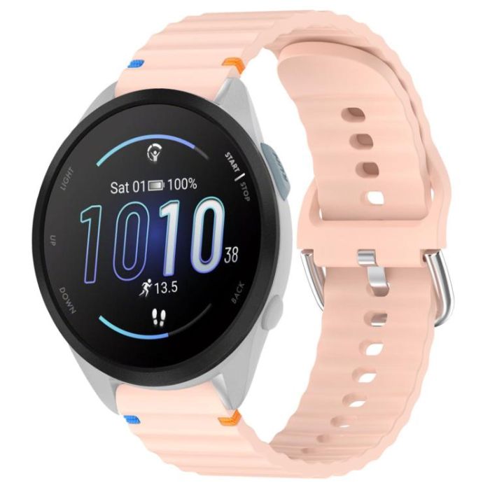 For Garmin Forerunner 165 Wavy Grain Stitched 20mm Silicone Watch Band(Pink)