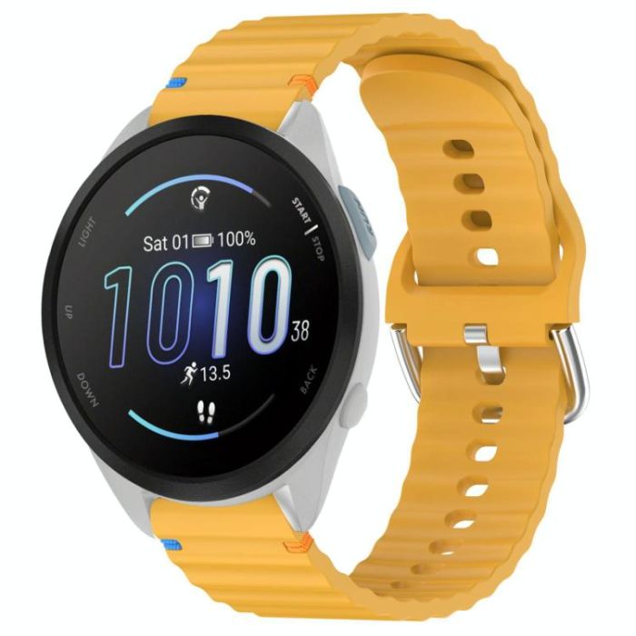 For Garmin Forerunner 165 Wavy Grain Stitched 20mm Silicone Watch Band(Yellow)