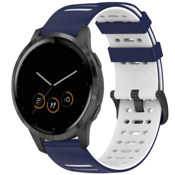 For Garmin Watch 22mm Hollow Three Rows Hole Two Color Silicone Watch Band(Midnight Blue+White)