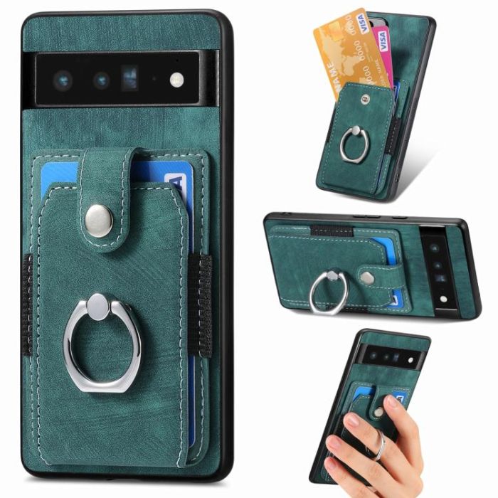 For Google Pixel 6 Pro Retro Skin-feel Ring Card Wallet Phone Case(Green)