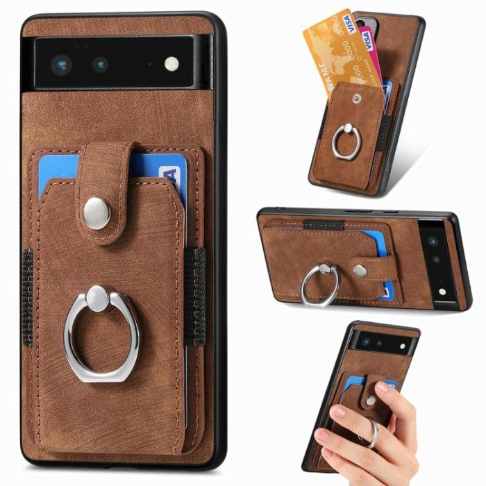 For Google Pixel 6 Retro Skin-feel Ring Card Wallet Phone Case(Brown)