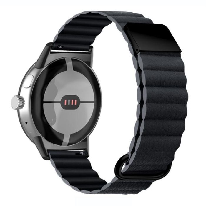 For Google Pixel Watch Reverse Buckle Magnetic Genuine Leather Watch Band(Grey)
