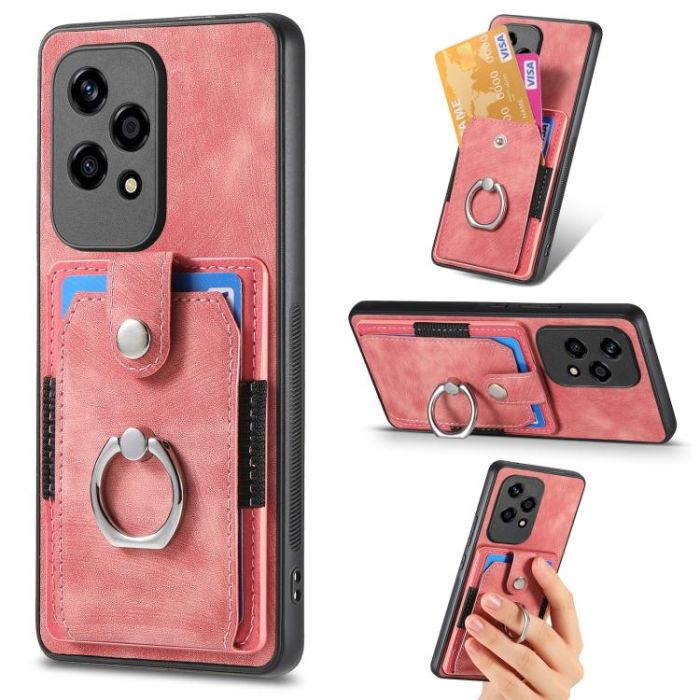 For Honor 200 Lite Global Retro Skin-feel Ring Card Wallet Phone Case(Pink)