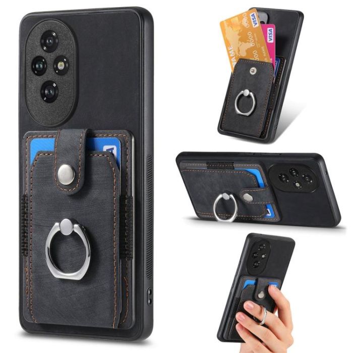 For Honor 200 Pro Retro Skin-feel Ring Card Wallet Phone Case(Black)