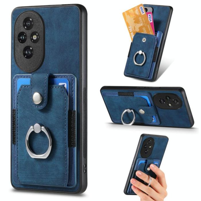 For Honor 200 Pro Retro Skin-feel Ring Card Wallet Phone Case(Blue)