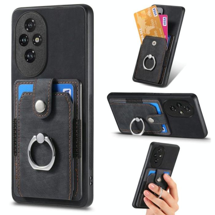 For Honor 200 Retro Skin-feel Ring Card Wallet Phone Case(Black)