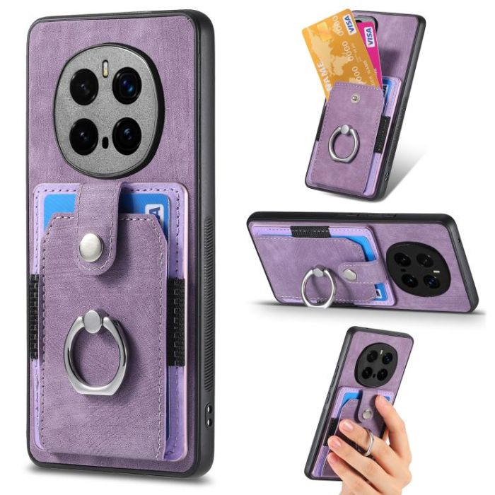 For Honor Magic7 Pro Retro Skin-feel Ring Card Wallet Phone Case(Purple)