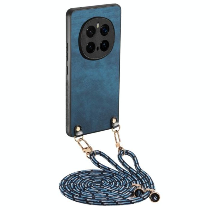 For Honor Magic7 Pro Vintage Leather PC Back Cover Phone Case with Crossbody Strap(Blue)