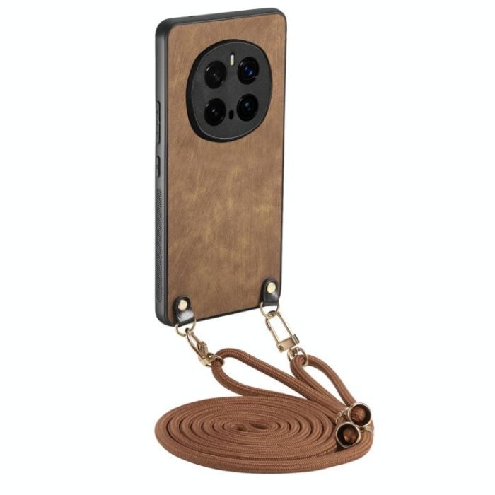 For Honor Magic7 Pro Vintage Leather PC Back Cover Phone Case with Crossbody Strap(Brown)