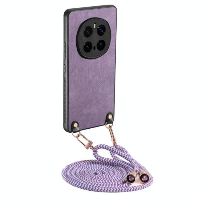 For Honor Magic7 Pro Vintage Leather PC Back Cover Phone Case with Crossbody Strap(Purple)