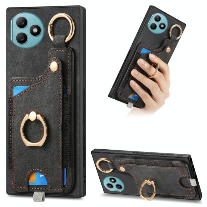 For Honor X50i+ Retro Skin-feel Ring Card Bag Phone Case with Hang Loop(Black)