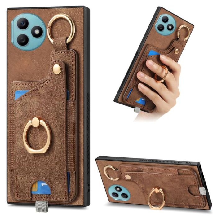 For Honor X50i+ Retro Skin-feel Ring Card Bag Phone Case with Hang Loop(Brown)