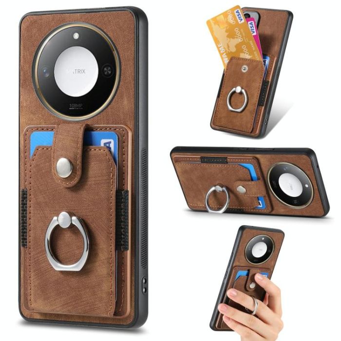 For Honor X60 Retro Skin-feel Ring Card Wallet Phone Case(Brown)