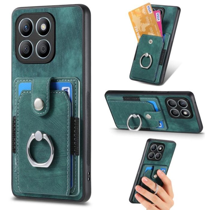For Honor X7b Retro Skin-feel Ring Card Wallet Phone Case(Green)