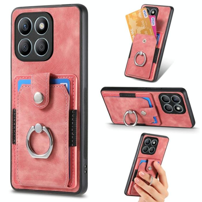 For Honor X7b Retro Skin-feel Ring Card Wallet Phone Case(Pink)