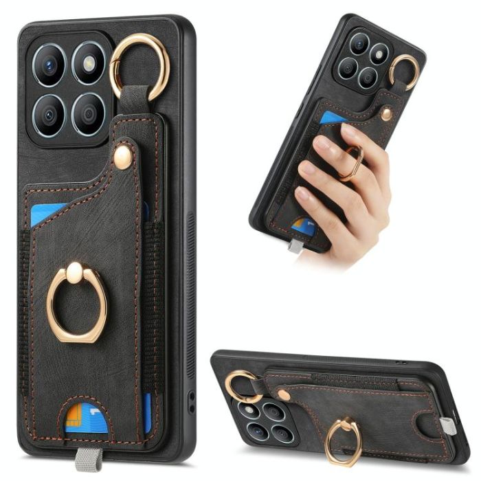 For Honor X8b Retro Skin-feel Ring Card Bag Phone Case with Hang Loop(Black)