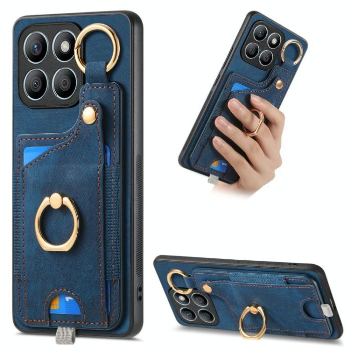 For Honor X8b Retro Skin-feel Ring Card Bag Phone Case with Hang Loop(Blue)