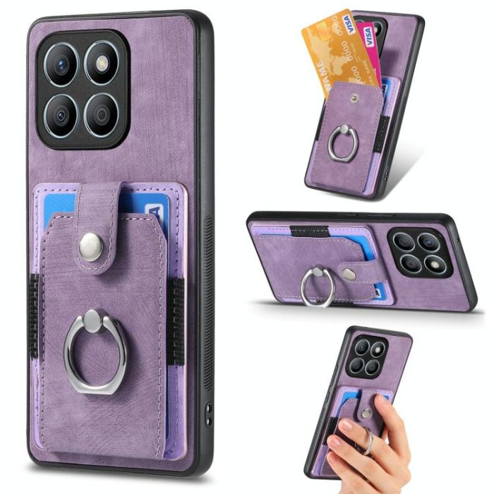 For Honor X8b Retro Skin-feel Ring Card Wallet Phone Case(Purple)