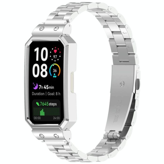 For Huawei Band 10 / 10 NFC / 9 / 9 NFC Watch Frame Integrated Three Beads Stainless Steel Watch Band(Silver)