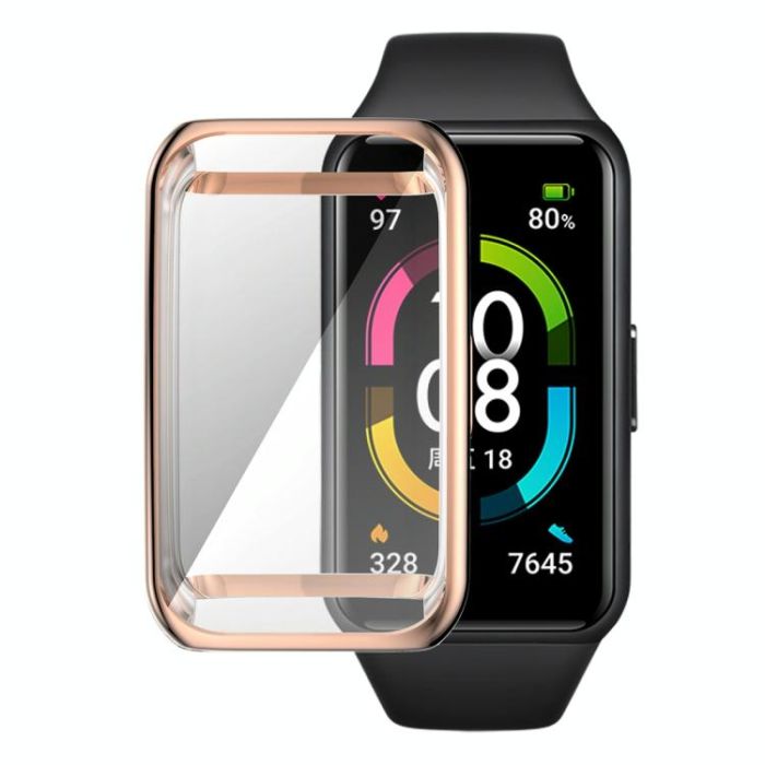 Description / For Huawei Band 7/6 / Honor Band 6 ENKAY Hat-Prince Full Coverage Electroplated Soft TPU Case with Screen Protection(Rose Gold)