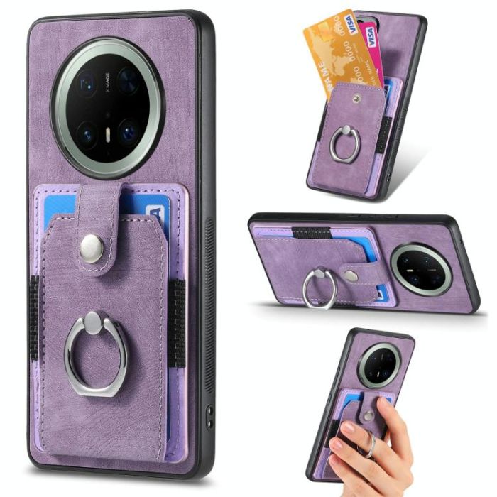 Description / For Huawei Mate 70 Pro Retro Skin-feel Ring Card Wallet Phone Case(Purple)