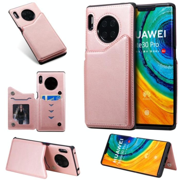 Description / For Huawei Mate30 Pro Solid Color Calf Texture Shockproof Protective Case with Card Slots & Photo Frame(Rose Gold)