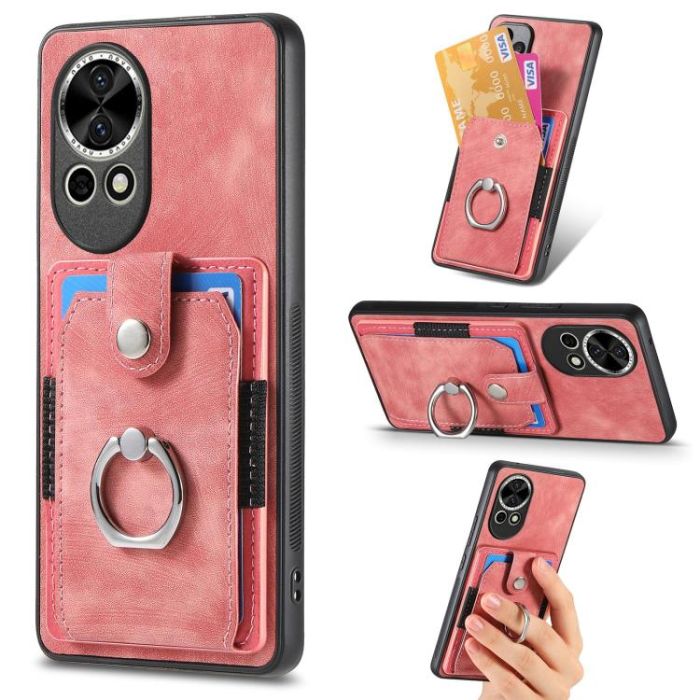 Description / For Huawei nova 13 Retro Skin-feel Ring Card Wallet Phone Case(Pink)