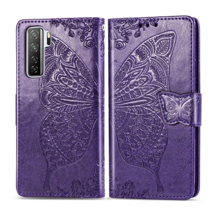 For Huawei Nova 7 SE/P40 Lite 5G Butterfly Love Flower Embossed Horizontal Flip Leather Case with Bracket / Card Slot / Wallet / Lanyard(Dark Purple)