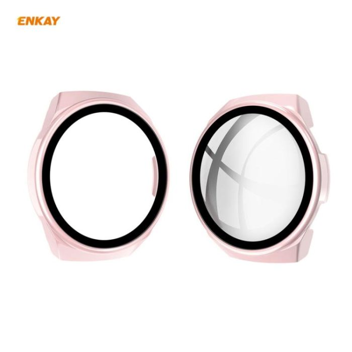 For Huawei Watch GT 2e 46mm ENKAY Hat-Prince ENK-AC8203 Full Coverage PC Frosted Case + 9H Tempered Glass Film(Pink)