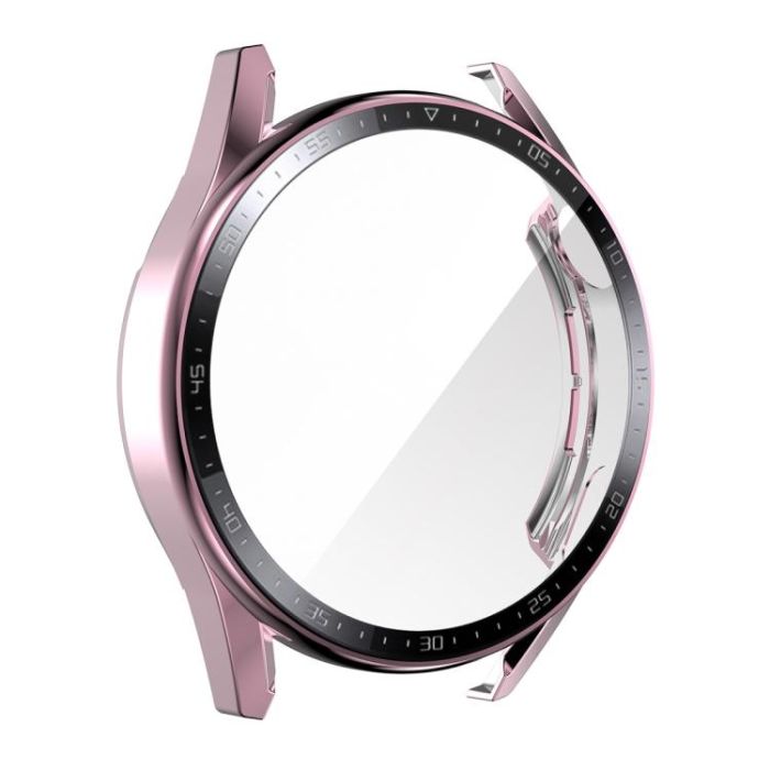 For Huawei Watch GT 3 46mm ENKAY PC Frame + Tempered Glass Protector Case With Scale(Pink)