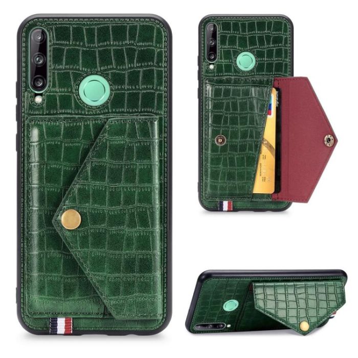 For Huawei Y7P/P40 Lite E Crocodile Pattern Envelope Card Package Phone Case With Magnet And Bracket Function(Green)