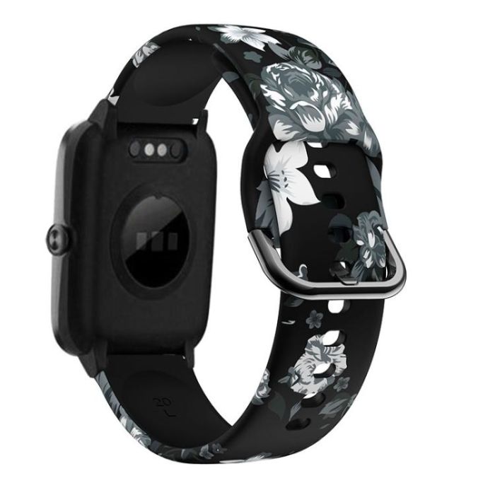 For ID205 / Willful SW021 19mm Silicone Printing Watch Band(Black Grey Flower)