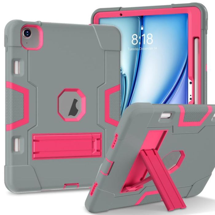 For iPad Air 11 2025 / 2024 Contrast Color Silicone Acrylic PC Tablet Case with Holder(Grey Rose Red)