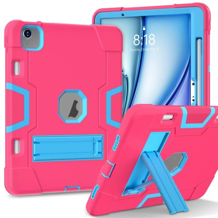 For iPad Air 11 2025 / 2024 Contrast Color Silicone Acrylic PC Tablet Case with Holder(Rose Red Blue)