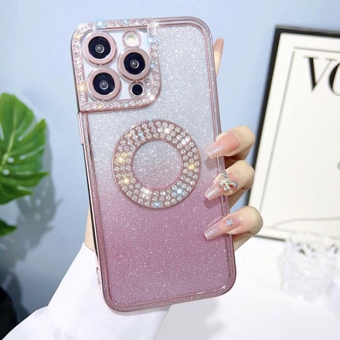 For iPhone 12 Electroplated Diamond Gradient Glitter Phone Case(Rose Gold)