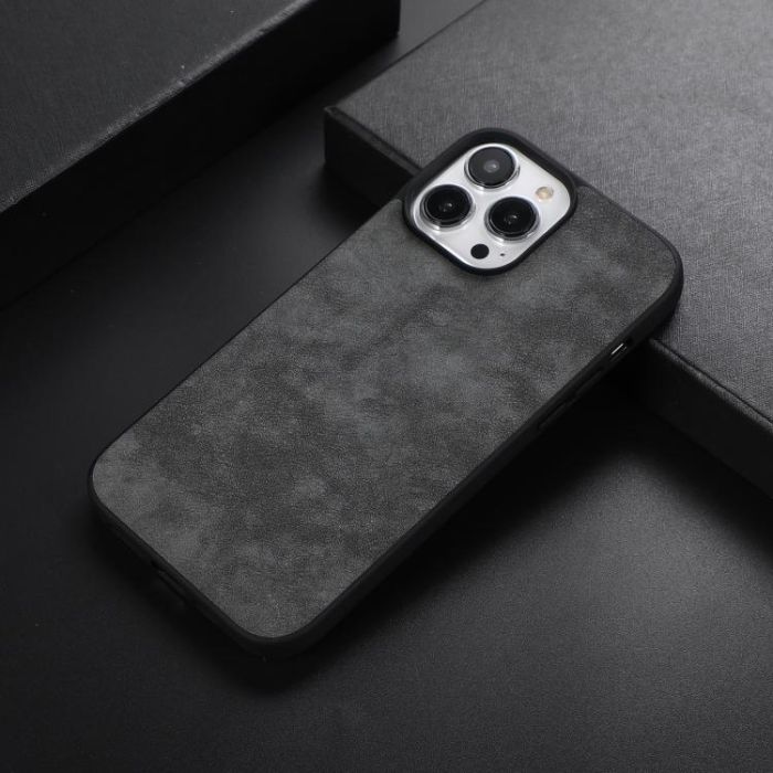 For iPhone 13 Pro Max Morocco Texture PU+TPU+PC Shockproof Phone Case (Black)