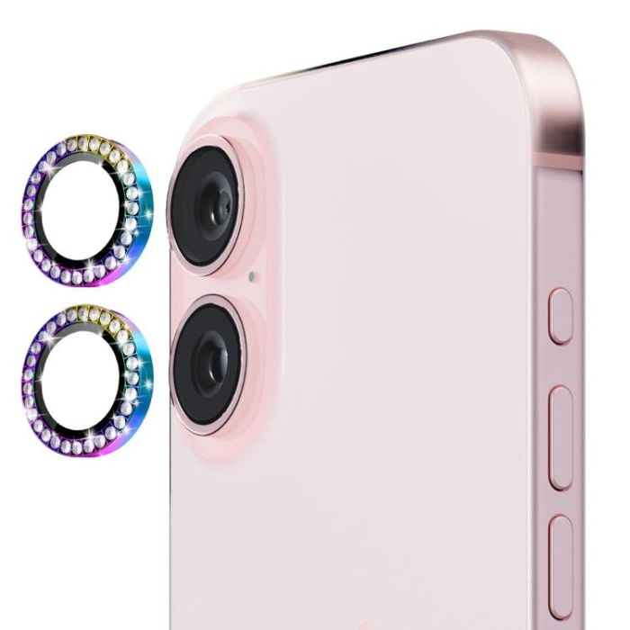 For iPhone 16 / 16 Plus ENKAY AR Anti-reflection Individual Diamond Ring Camera Lens Glass Full Film(Colorful)