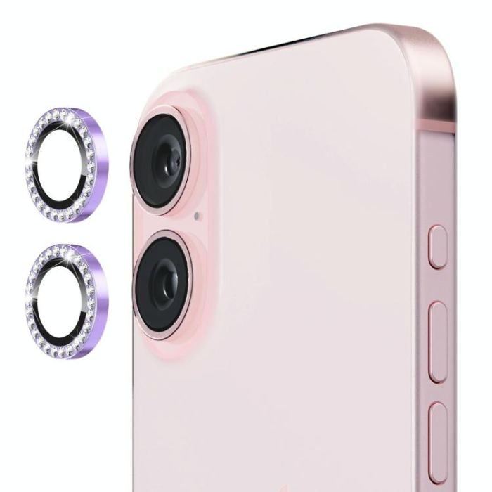 For iPhone 16 / 16 Plus ENKAY AR Anti-reflection Individual Diamond Ring Camera Lens Glass Full Film(Light Purple)