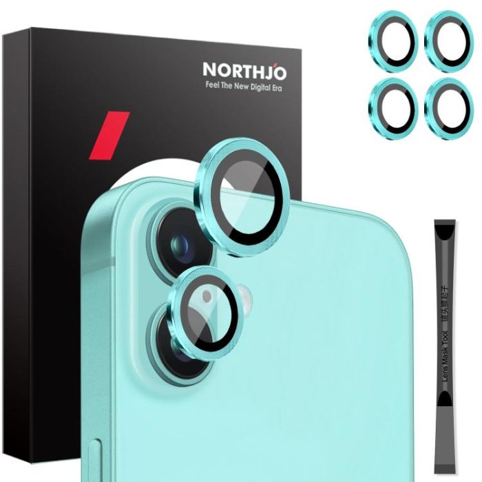 For iPhone 16 / 16 Plus NORTHJO 2 Sets 4pcs Camera Lens Protector Cover Metal Ring Film(Cyan)