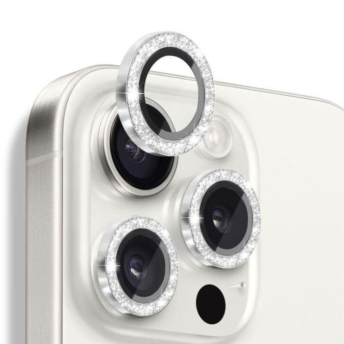 For iPhone 16 Pro / 16 Pro Max NORTHJO Glitter Camera Lens Protector Tempered Glass Metal Ring Film(Silver)