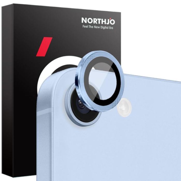 For iPhone 16e NORTHJO Camera Lens Protector CD Metal Ring Tempered Glass Film(Blue)